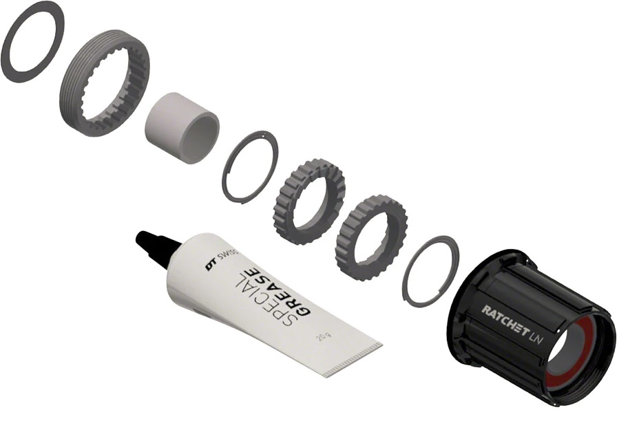 DT SWISS nabízí více variant a druhů záběrových ořechů, které lze na všech nábojích DT jednoduše měnit! V dnešní době je potřeba vždy jen určit, zda je náboj se standardním RATCHET záběrem ( 2x volná zubatka + 2x volná pružina - gumové těsnění nalisováno na náboji ), nebo RATCHET EXP ( 1x volná zubatka, 1x našroubovaná zubatka v náboji + 1x pružina - gumové těsnění nalisováno na náboji ), dále pak RATCHET LN ( 2x volná zubatka + 2x volná pružina - gumové těsnění nasazeno na ořechu ) a případně poslední možnost jsou náboje s 3 praporkovým záběrem! Vše jde jednoduše zjistit, stačí jen vycvaknout ořech z náboje.