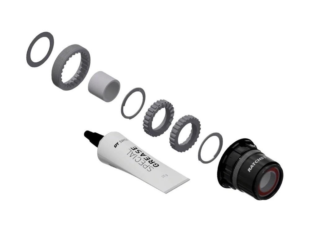 DT SWISS nabízí více variant a druhů záběrových ořechů, které lze na všech nábojích DT jednoduše měnit! V dnešní době je potřeba vždy jen určit, zda je náboj se standardním RATCHET záběrem ( 2x volná zubatka + 2x volná pružina - gumové těsnění nalisováno na náboji ), nebo RATCHET EXP ( 1x volná zubatka, 1x našroubovaná zubatka v náboji + 1x pružina - gumové těsnění nalisováno na náboji ), dále pak RATCHET LN ( 2x volná zubatka + 2x volná pružina - gumové těsnění nasazeno na ořechu ) a případně poslední možnost jsou náboje s 3 praporkovým záběrem! Vše jde jednoduše zjistit, stačí jen vycvaknout ořech z náboje.